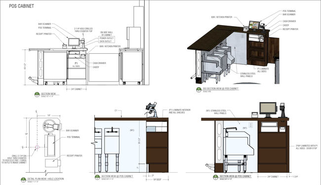 Request for this project: Design and develop a standard modular bar that could be placed in existing retail spaces. This Client needed to compete with similar companies already utilizing food and alcohol offerings in their locations. Sketchup was again utilized for this project to provided detailed shop drawings for fabrication of cabinets and countertops along with providing 3D files to the architects to use in their project submissions. Having detailed and accurate shop drawings makes the process of bringing together multiple professions for a successful project!